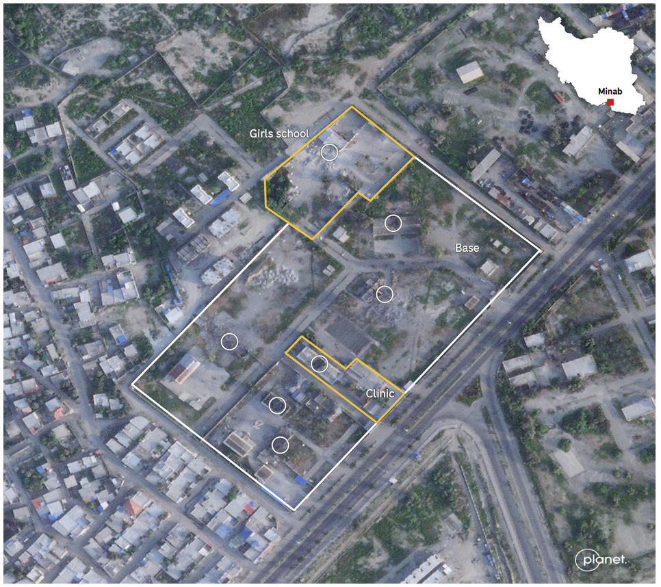 Video, ktoré zdieľala tlačová agentúra Mehr News, údajne ukazuje „okamih, keď izraelskí a americkí teroristi 28. februára zaútočili na školu v Minabe“. Denníky Washington Post aj New York Times overili pravosť záberov pomocou satelitných snímok, príspevkov na sociálnych sieťach a ďalších geolokovaných videí.