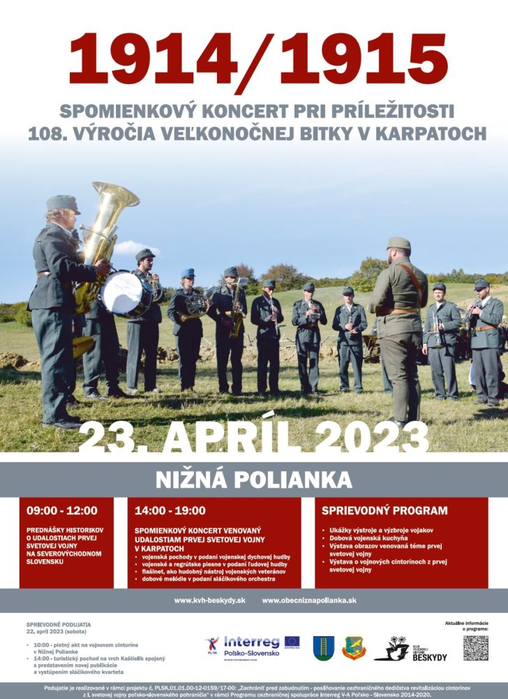 NIŽNÁ POLIANKA: 23.04.2023 – SPOMIENKOVÝ KONCERT PRI PRÍLEŽITOSTI 108. VÝROČIA VEĽKONOČNEJ BITKY V KARPATOCH – 1914/1915