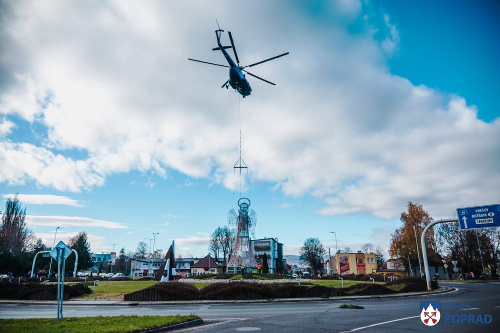 Najväčšia dominanta popradskej vianočnej výzdoby priletela do nášho mesta už po 17. krát tradične vrtuľníkom na najväčší kruhový objazd v meste. Prílet v pondelok 10.1.2025 anjela bol rýchly a bez vzniknutých komplikácií.