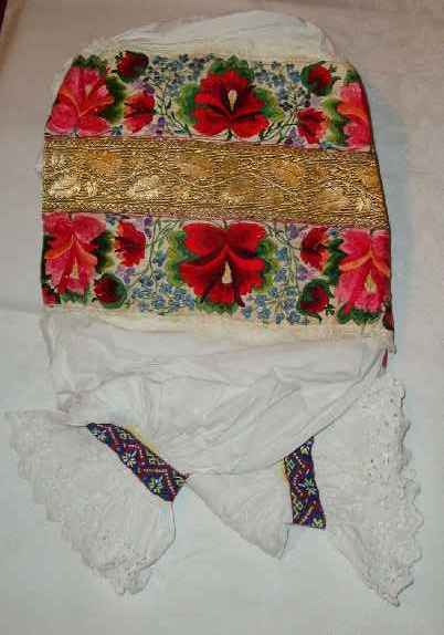 Slávnostný kroj z obdobia okolo roku 1910 až do roku 1944-45 pozostával zo spodníka a z tenkých rukávcov, ktoré boli na pleciach ozdobené zlatým šíkom (duplom) a pestrou výšivkou, ktorá hýrila množstvom farieb vo viacerých odtieňoch. Obľúbená bola popri zelenej, červenej, fialovej najmä výrazná ružová.