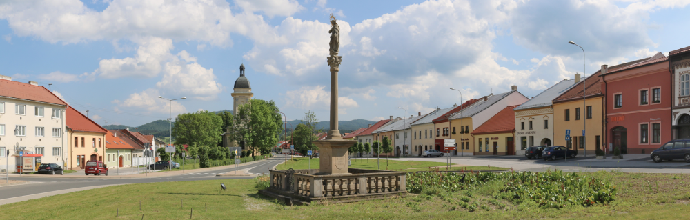 Medzi historické pamiatky mesta patrí pôvodne románsky kostol sv. Jána Krstiteľa, po roku 1434 neskorogotický prestavaný s barokovým interiérom, dvojdielna bronzová krstiteľnica z r. 1497, krucifix z okruhu Majstra Pavla z Levoče, pôvodne gotická budova bývalej radnice, postavená v 15. storočí s prístavbou zo 17. storočia, kde časť budovy slúži ako kostolík s neskorogotickým skriňovým oltárom z čias okolo roku 1500, budova rímsko-katolíckej fary pôvodne gotická z 15. storočia, neskôr renesančne prefasádovaná, Mariánsky barokový stĺp z roku 1727, evanjelický románsky kostol z roku 1787, ku ktorému bola neskôr pristavaná veža, a tak nadobudol dnešnú podobu.